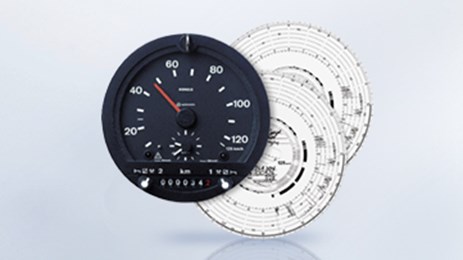 - Registrazione su dischi tachigrafo di una serie di dati, tra cui velocità, distanza percorsa, tempi di guida, tempi di lavoro e pause, oltre alla registrazione (opzionale) del regime di rotazione del motore.